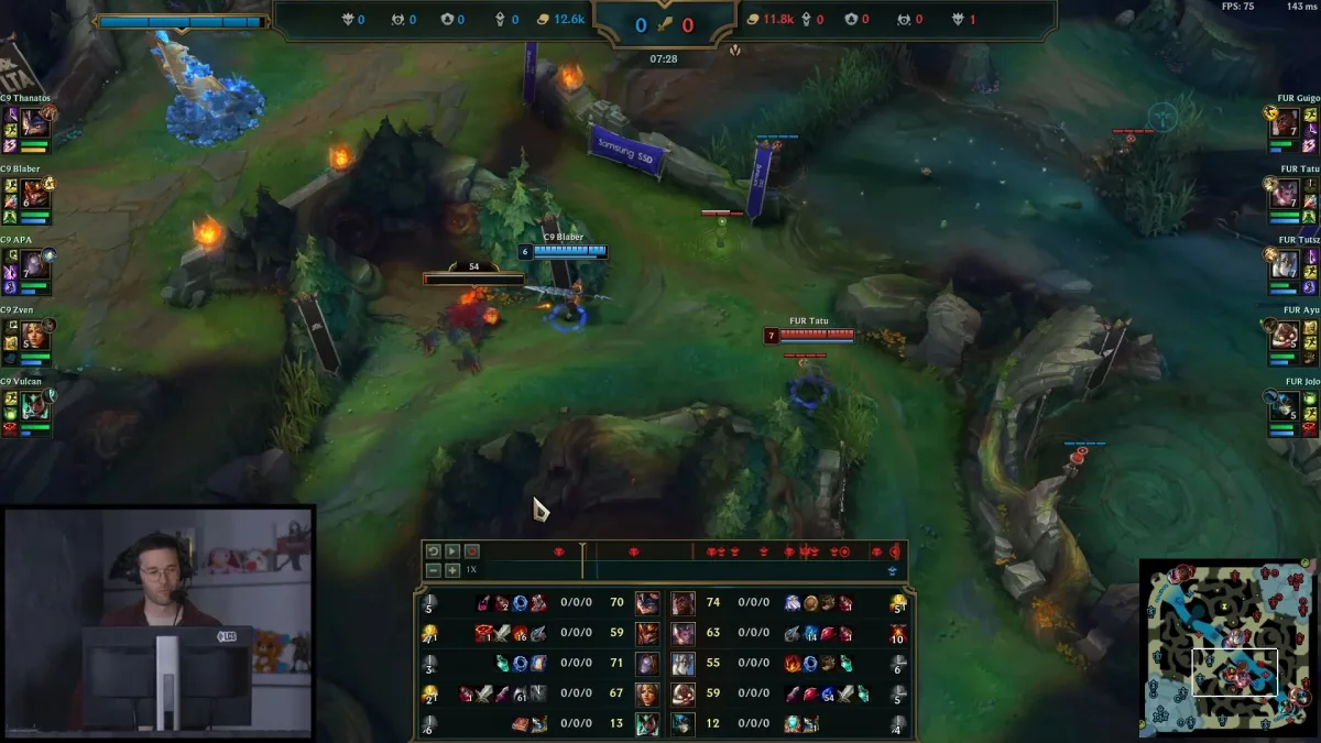 Tatu threaded the needle on ward geometry. League of Legends wards provide vision in a fixed radius and playing the edge means moving precisely enough to stay just outside that range. A single misstep would’ve revealed his position and killed the element of surprise entirely.