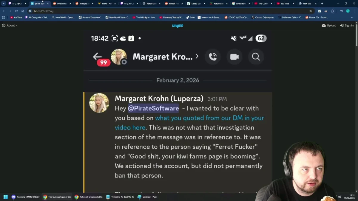 Twitch streamer PirateSoftware took his harassment complaint public after a player repeatedly targeted him with insults in what appears to be Ashes of Creation. The main offense? Calling him a “ferret f***er” along with other trolling behavior.
