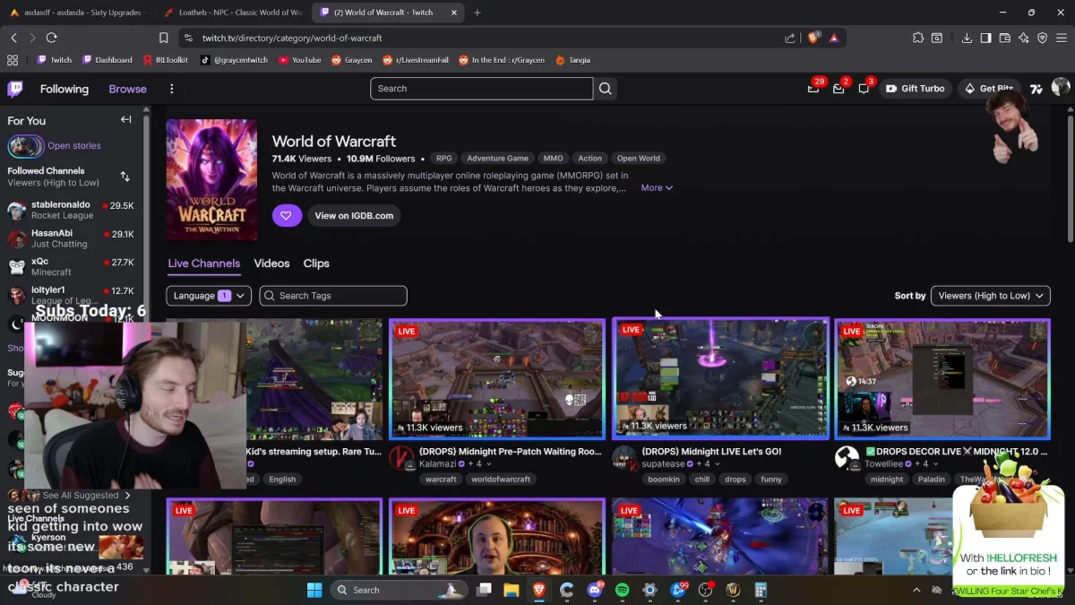 The German Onlyfangs community allegedly pooled into a large Stream Together cluster, temporarily dominating the WoW directory’s upper listings with repeated channel cards showing the same combined total. Smaller categories see similar tactics where low absolute numbers can still push grouped channels to the top through pooling.